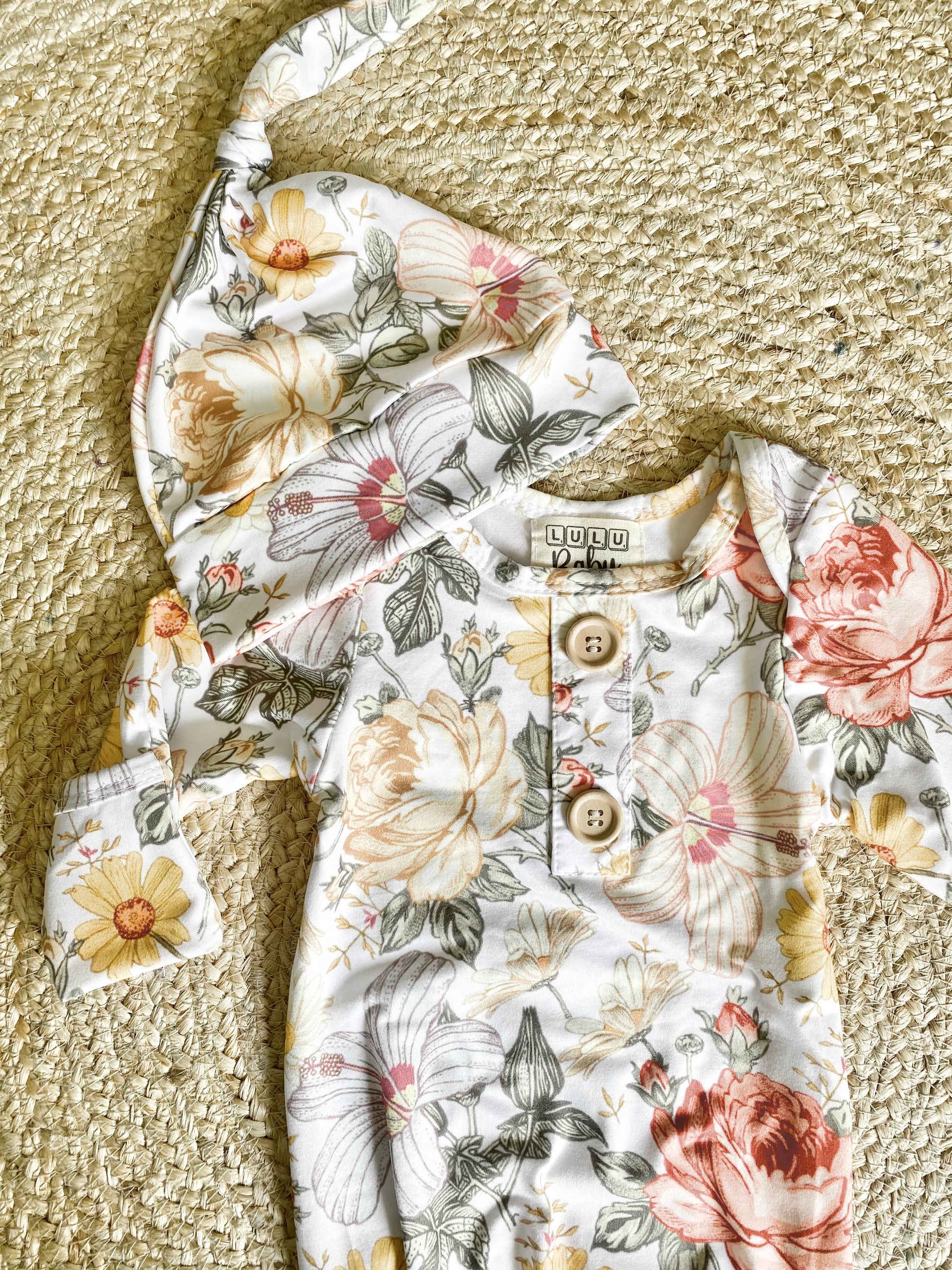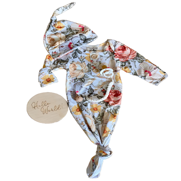 Knot Gown and Hat - Floral (newborn)